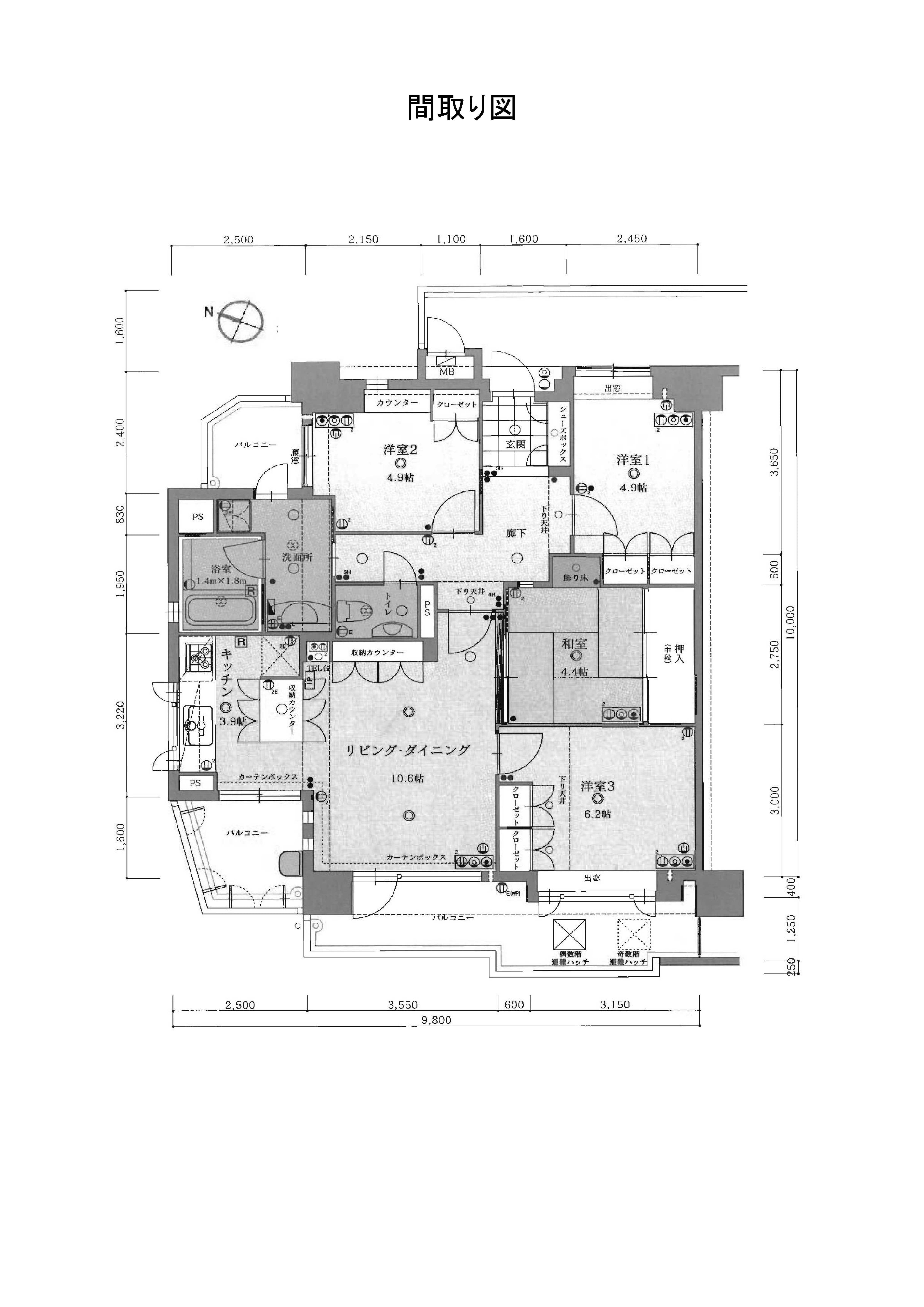 - LD10.6帖 キッチン3.9帖 洋室6.2帖 洋室4.9帖×2部屋 和室4.4帖